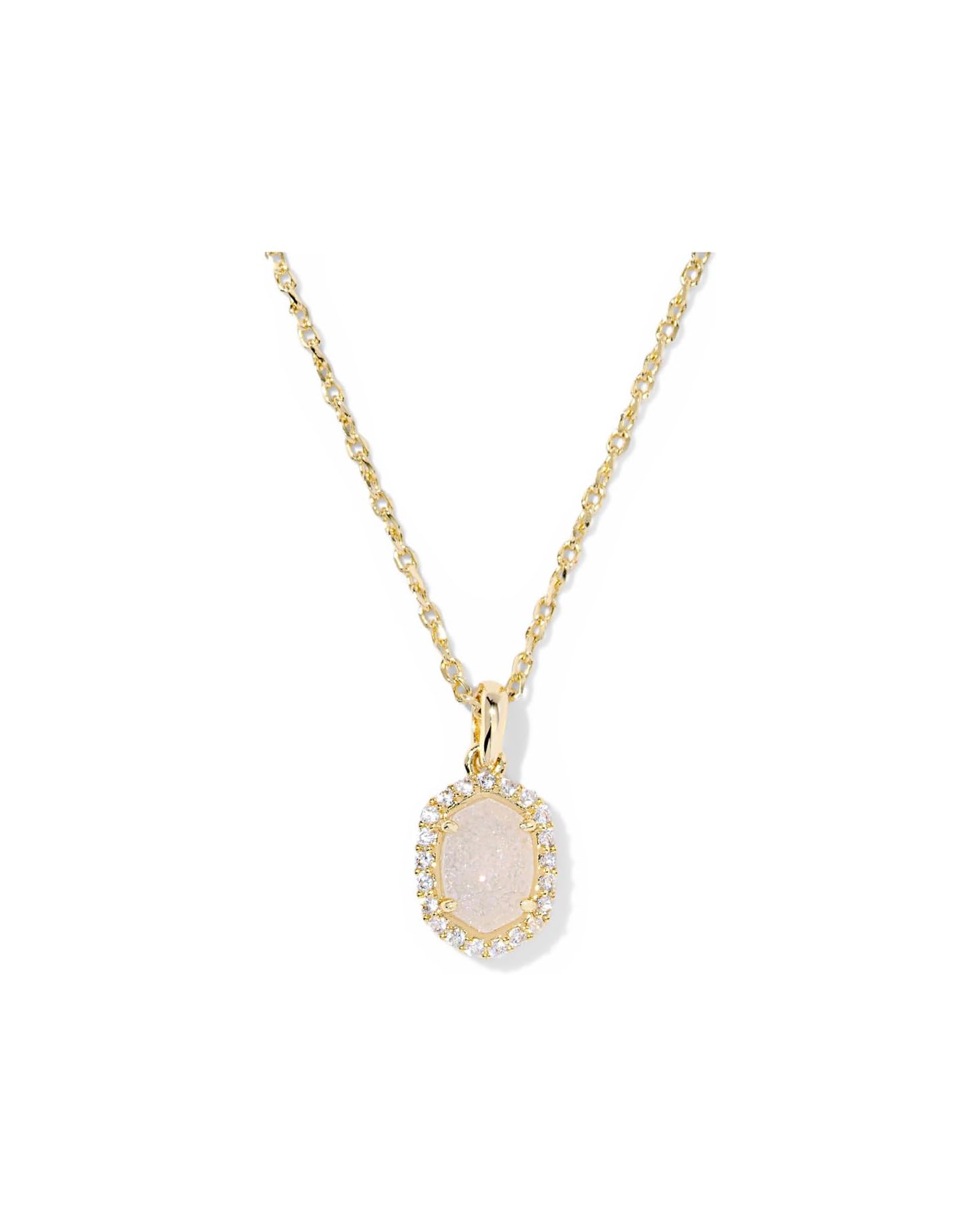 - The Kendra Scott® Daphne Crystal Frame Short Pendant Necklace brings effortless sophistication to your everyday style. Crafted from luxurious gold-plated brass, this pendant gleams with a good-cut malachite gemstone framed in shimmering crystals, adding a pop of natural beauty and depth to any look. The prong setting highlights every facet, capturing light from every angle for a luminous finish. Designed with a lobster clasp for secure wear, this short pendant sits gracefully along the neckline, perfect for layering or making a subtle statement on its own.